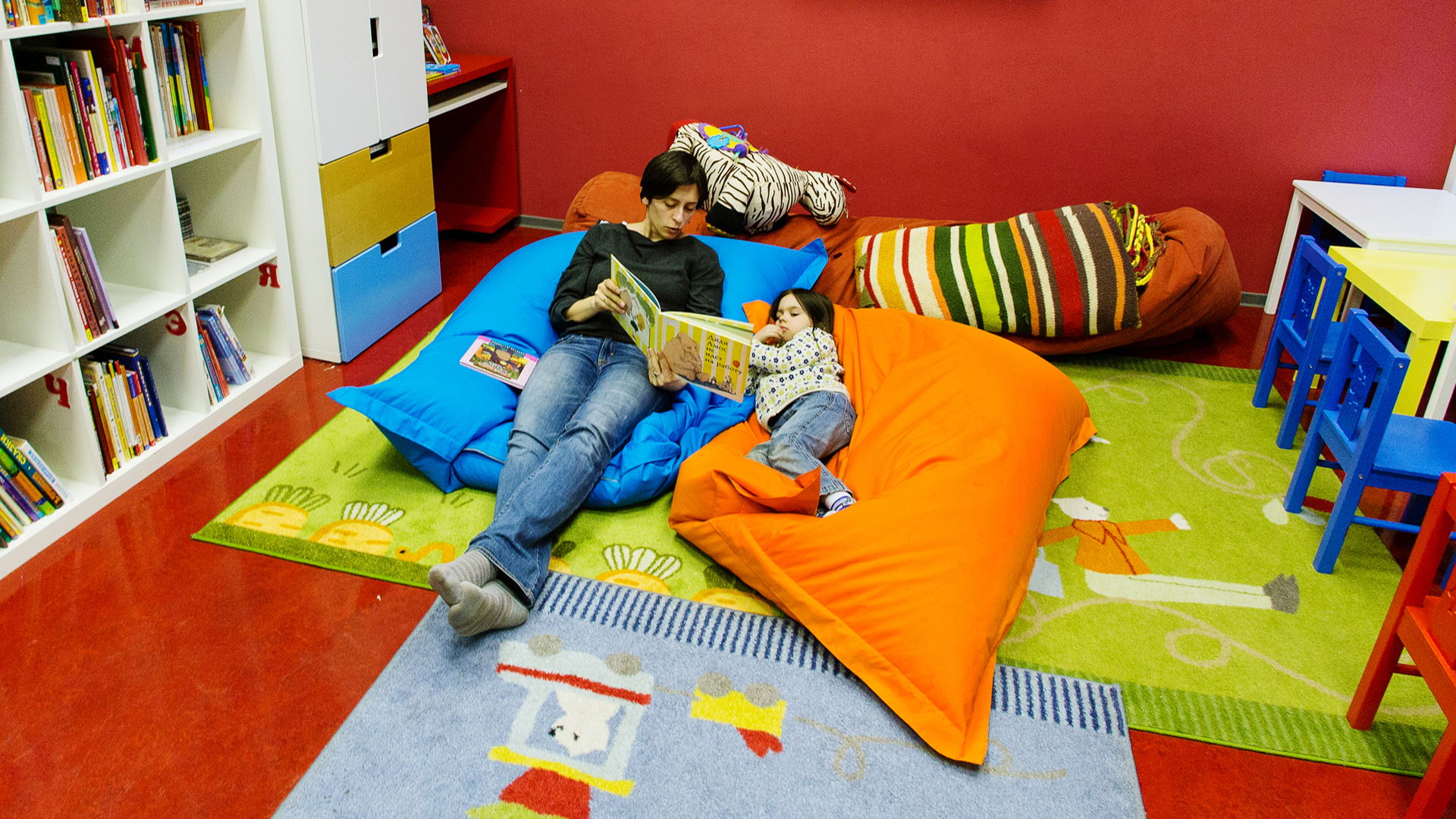 Занятия в Детской комнате основаны на методе театральной импровизации и социо-игрового стиля обучения. Дети читают, слушают и учатся выступать перед публикой, показывают этюды и сценки.